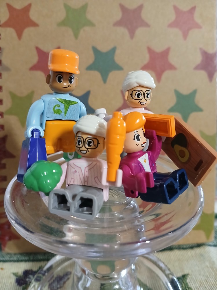 These cute tiny toys are the latest giveaways at our local supermarket. As they arrive in our home they are placed in any available retainer. This foursome looked happy enough waving their respective produce. Image © Gretchen Bernet-Ward 2026
