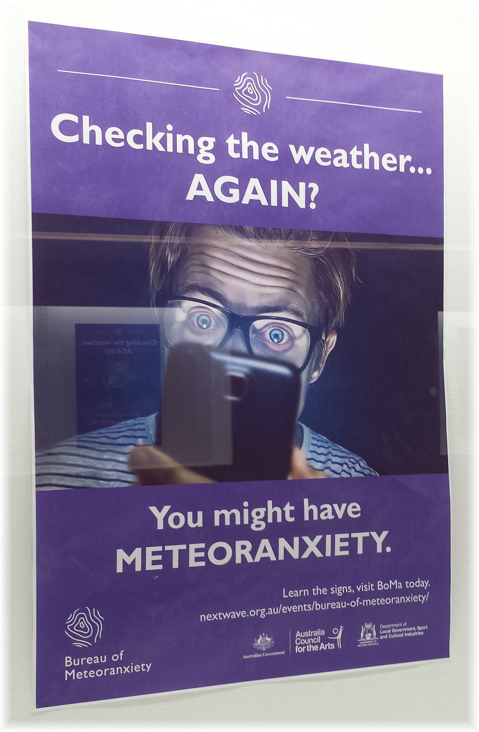 Image: Olivia Tartaglia and Alex Tate, Bureau of Meteoranxiety 2018, multimedia. Photo credit: Michael Tartaglia.