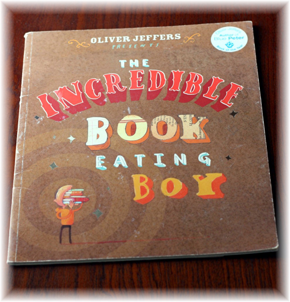 There is symmetrical, complementary and contradictory illustration approaches and I think The Incredible Book Eating Boy is approached in a complementary manner. Oliver Jeffers plays around with the location of text to good effect.