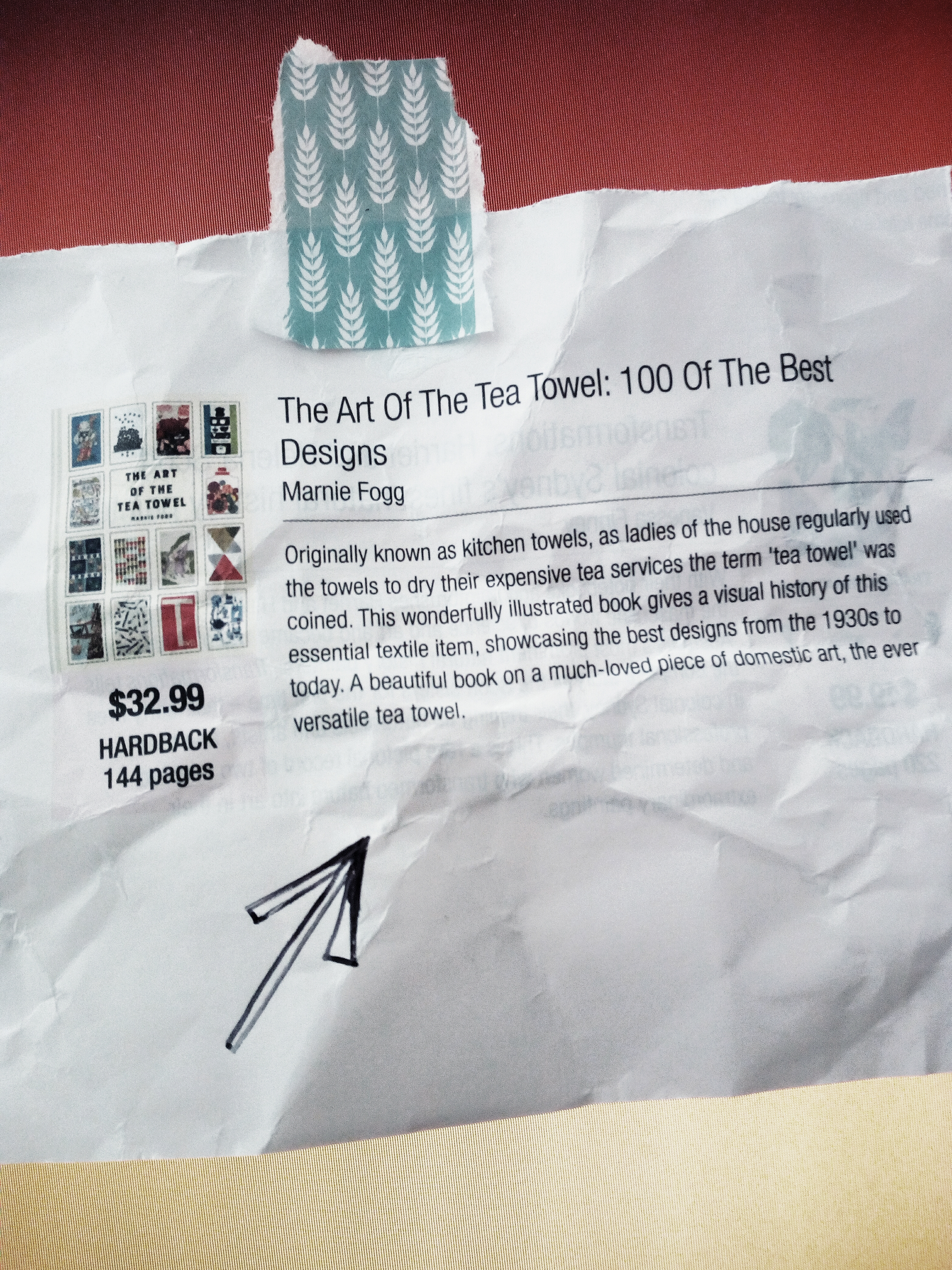 Before you yawn in boredom, let me explain. A local bookshop promotes a new title ‘The Art Of The Tea Towel’ by Marnie Fogg, hardback 144 pages and selling well.