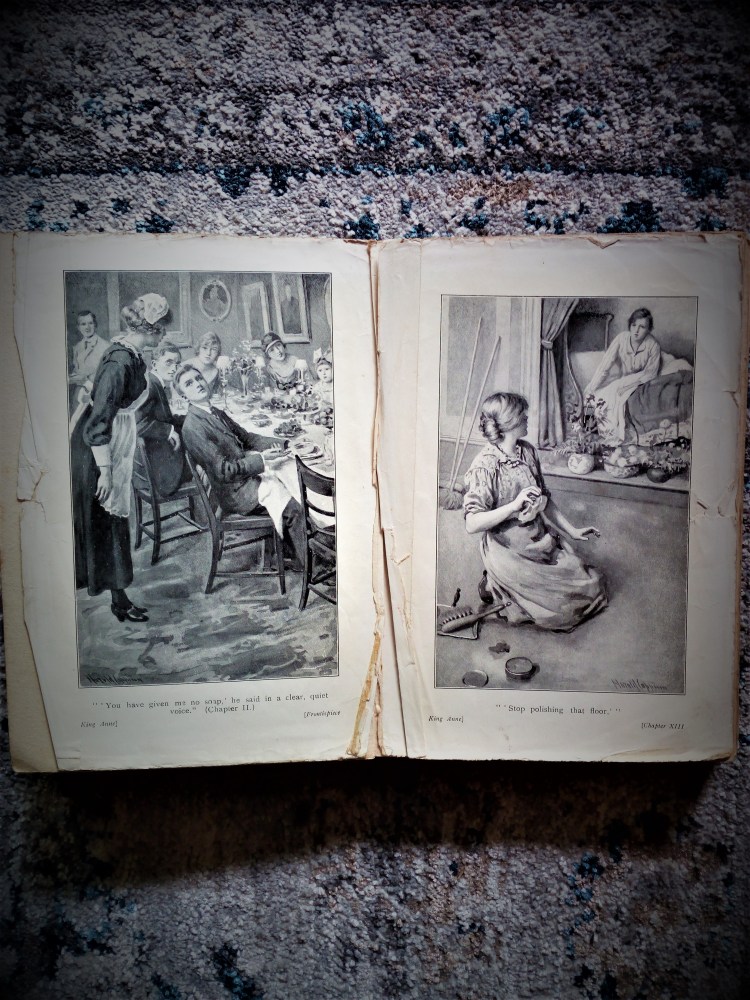 The bookcover faded and King Anne languished for many, many years on the family bookshelves, sandwiched between ancient copies of Kidnapped, Pilgrims Progress and Wind in the Willows, and enduring several moves until by some quirk of fate I reached for it today February 2022 when my great aunt and grandmother would have read it one hundred years ago. (Shivers)