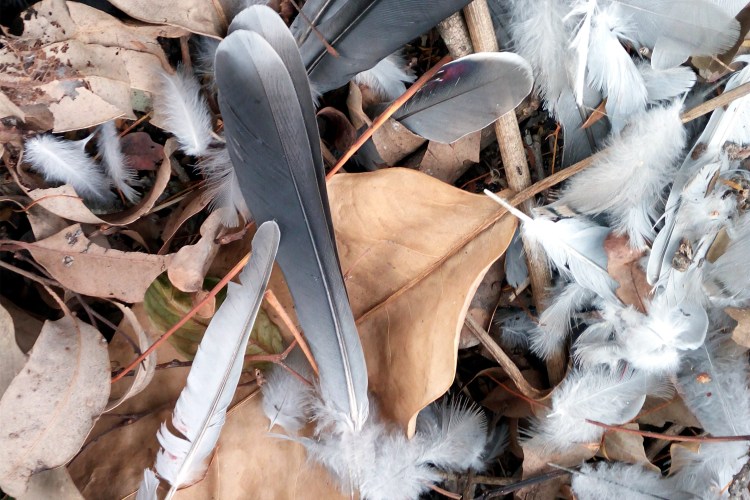 This sign had fallen off the fence onto grass under a eucalypt tree but whether caused by human or bird intervention is anyone’s guess. GBW.