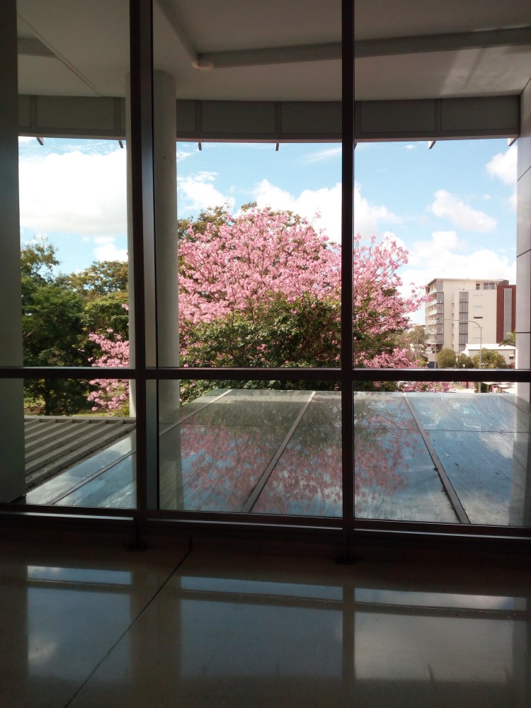 In the front garden, and I use the term loosely, there is structure and visions of edging and all, but I have let that slip. Two tall palm trees (above) on either side of the house echo early Queensland-style seen in rural areas. Tough-as-old-boots golden cane palms dot the area while I think our camellia is a Melbourne throwback. The stocky Illawarra flame tree with its pink orchids (above) was planted to complement the purple jacaranda nextdoor (viewed from balcony). I will not describe the weeds like camphor laurel, monstera or umbrella trees always springing up between the lemon scented tea-trees and more civilised shrubs. Does anyone still grow ‘mother-in-law tongue’ and ‘cast-iron’ plants? Cast iron is an unkillable broad leafed low-growing plant and I think it was beloved of early Victorians as either a hothouse or indoor plant in brass pots on wooden stands.